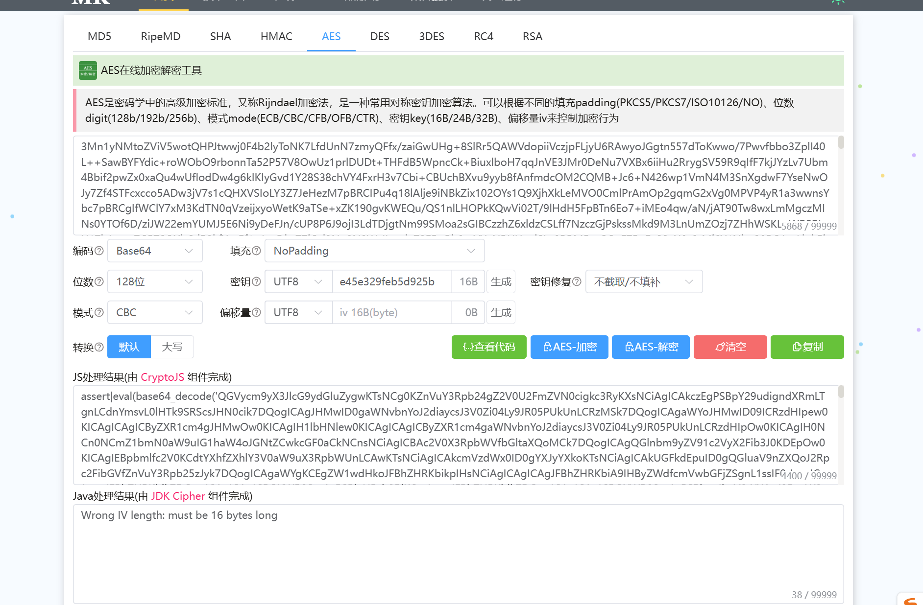 [AES在线加密解密工具 - AES在线加密 - AES加密 - AES解密 - AES算法原理 - MKLab在线工具](https://www.mklab.cn/utils/aes)